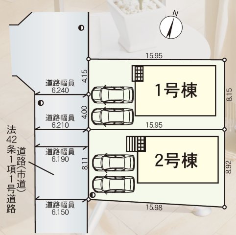 | 駐車場 | 2台 | 道路の幅員 | 西側6.1m公道 |