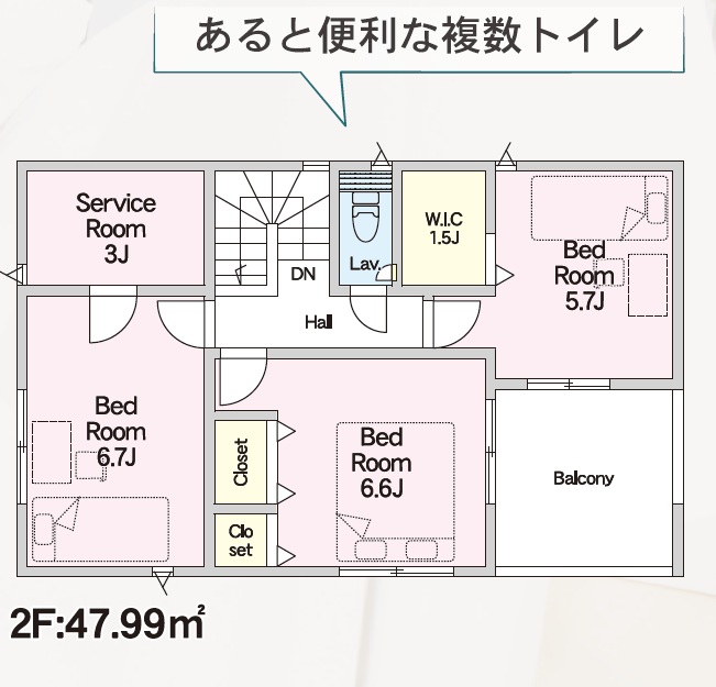 2号棟 間取り 4LDK 価格 2288万円 建物面積 94.77m2 土地面積 135.87m2 -