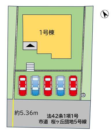 | 駐車場 | 5台 | 道路の幅員 | 南側5.3m公道 |