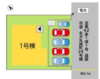 | 駐車場 | 4台 | 道路の幅員 | 南西側6.1m公道 |