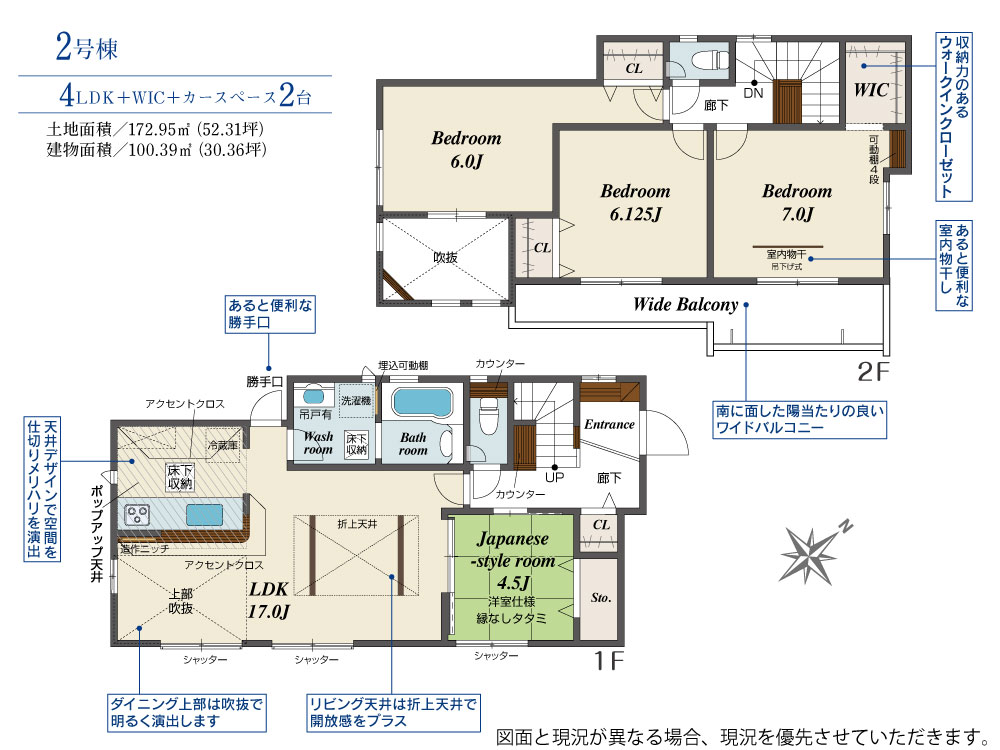 | 建物面積 | 100.39m2 | 土地面積 | 172.95m2 |