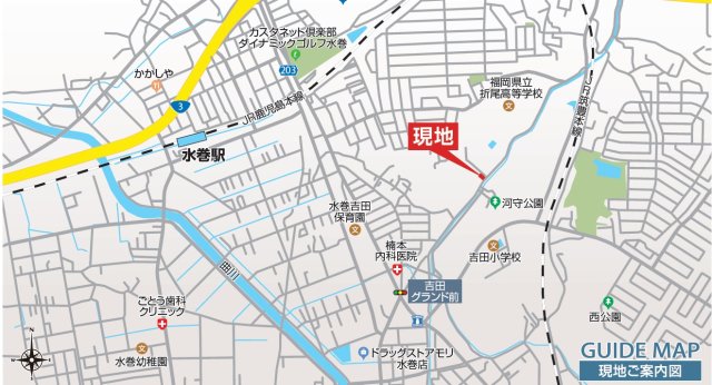 JR鹿児島本線「水巻」駅 徒歩19分 JR筑豊本線「東水巻」駅 徒歩22分 JR鹿児島本線「折尾」駅 徒歩21分 |