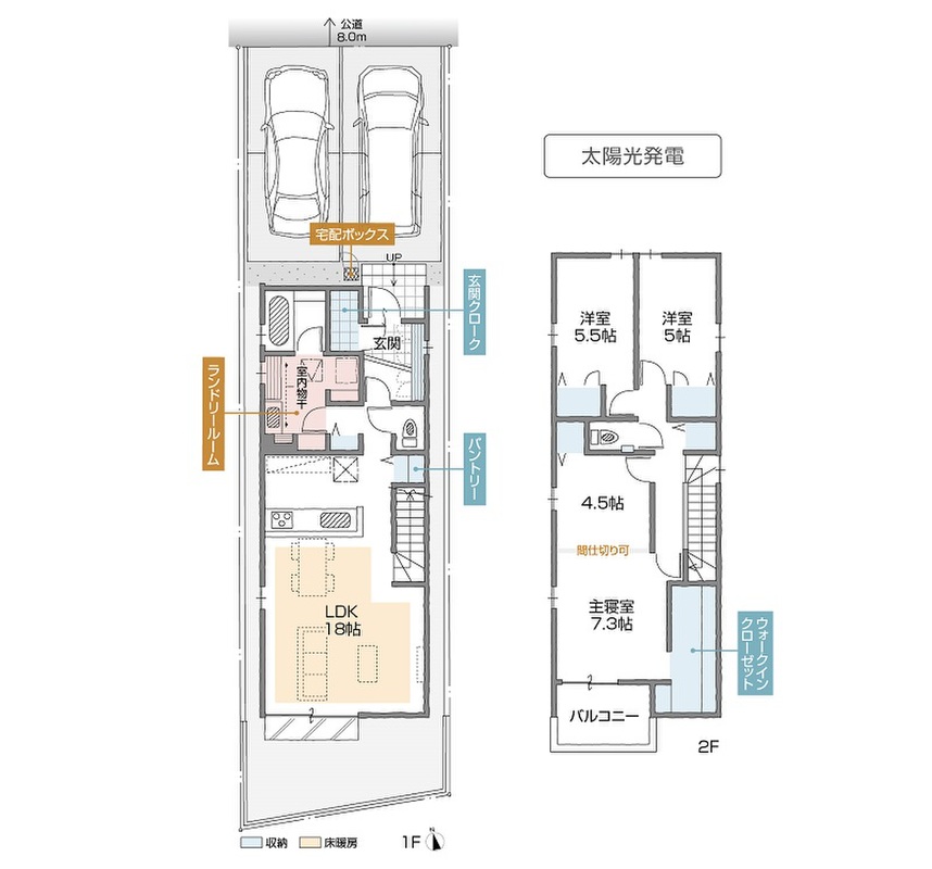 | 駐車場 | 2台 | 道路の幅員 | 北側 公道 幅員約8.0m(歩道含む) |