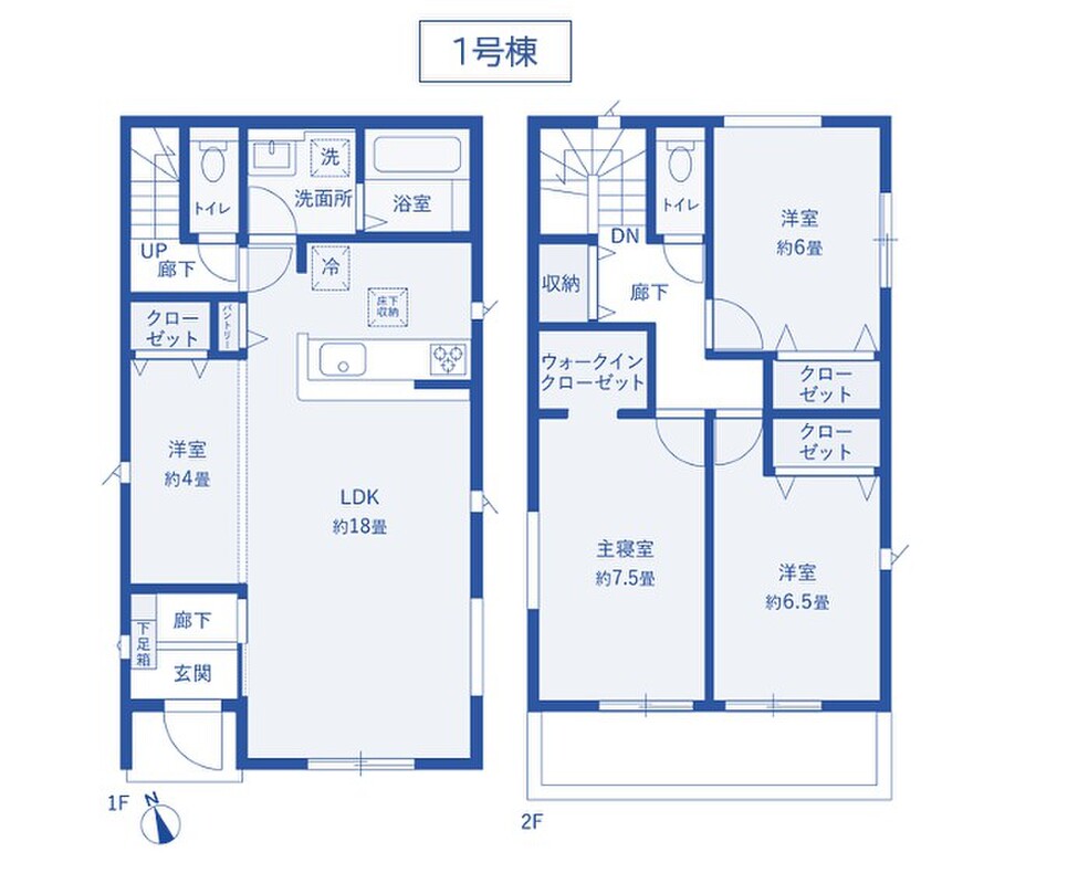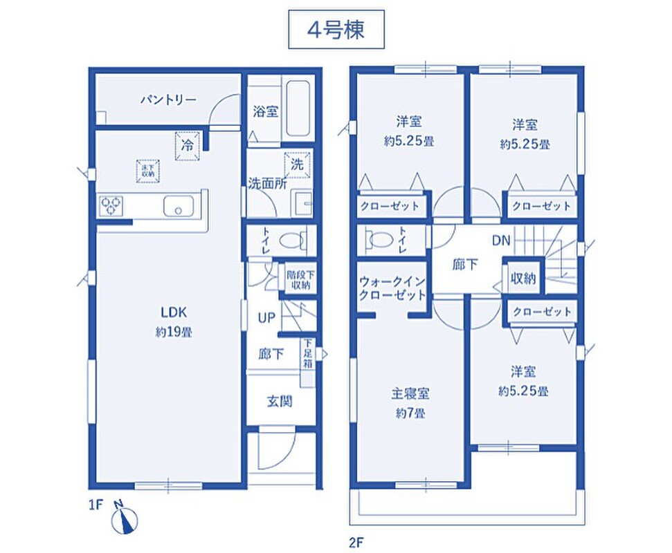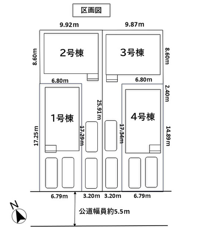 | 建物面積 | 100.60m2(3号棟)~104.34m2(4号棟) | 土地面積 | 117.48m2(1号棟)~140.47m2(2号棟) |