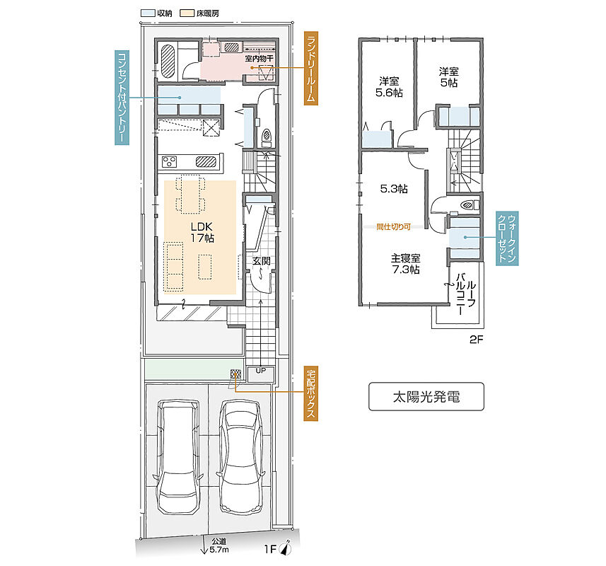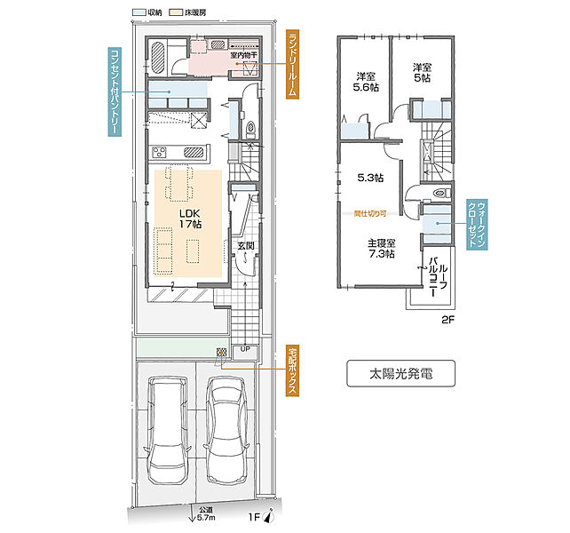 ※平面図・建築パースは都合により一部変更する場合があります。 ※分譲価格には仲介手数料・登記手続等の諸経費は含まれておりませんので、別途申し受けます。 ※写真は施工例です。 ※太陽光発電設備一式は、本体代金には含まれておりません。住宅購入から約15年間は太陽光発電パネルメーカーの所有となり、メーカーから電力を購入する契約となります。設備一式をオプション購入いただくこともできます。 |