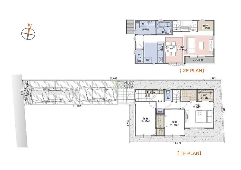 | 建物面積 | 83.00m2(B号棟)~88.62m2(A号棟) | 土地面積 | 104.26m2(B号棟)~110.81m2(A号棟) |