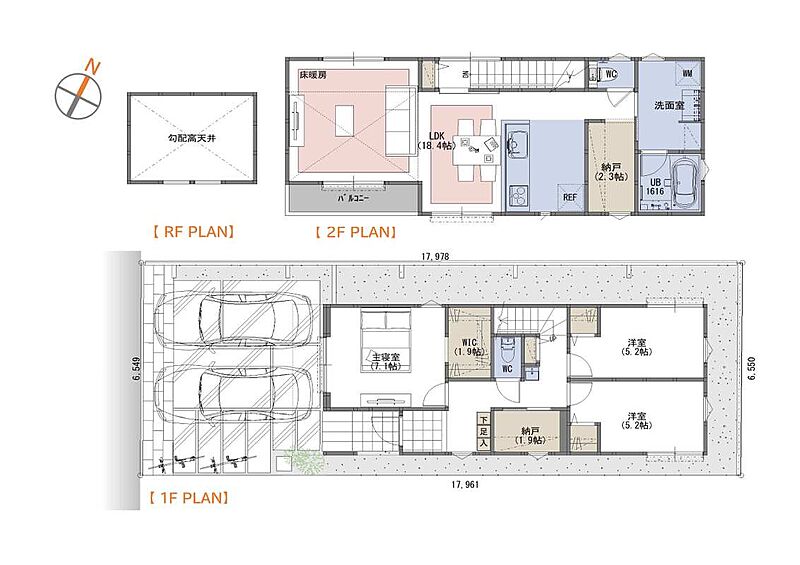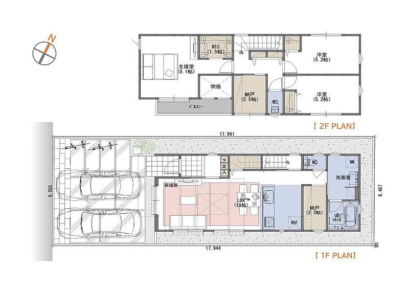 - 117.70m2(A号棟)~117.71m2(B号棟)
