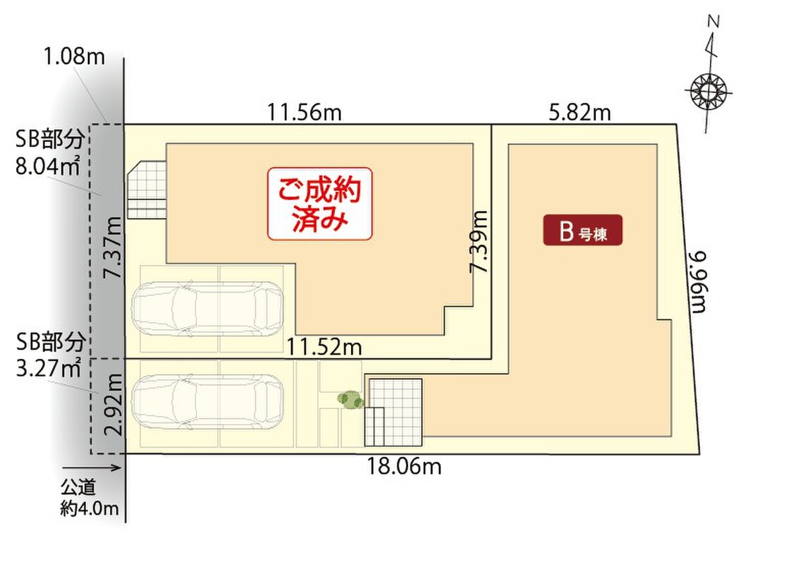 | 駐車場 | 1台 | 道路の幅員 | 西側 幅員約4.0m公道(SB部分を含む) |