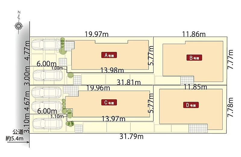 | 建物面積 | 101.01m2(C号棟)~103.52m2(D号棟) | 土地面積 | 108.77m2(C号棟)~138.64m2(D号棟) |