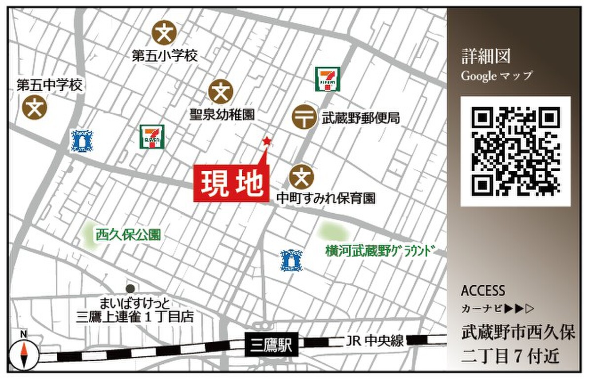 JR中央本線「三鷹」駅 徒歩10分 西武バス「西久保二丁目」停 徒歩3分 |
