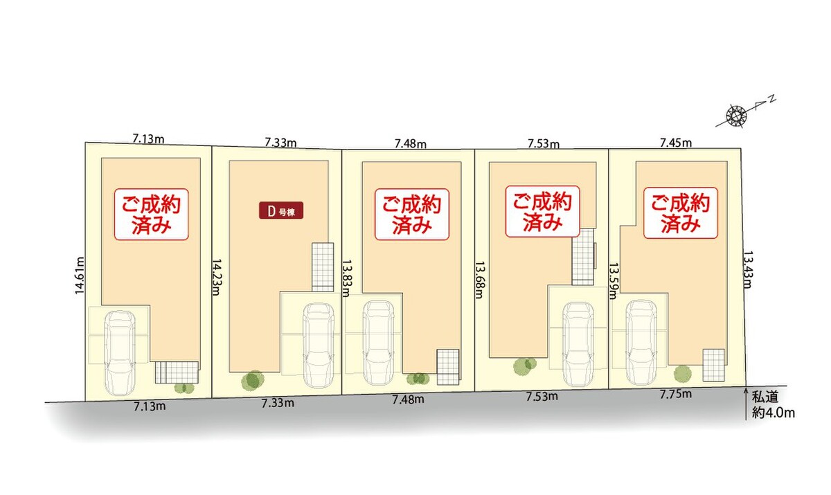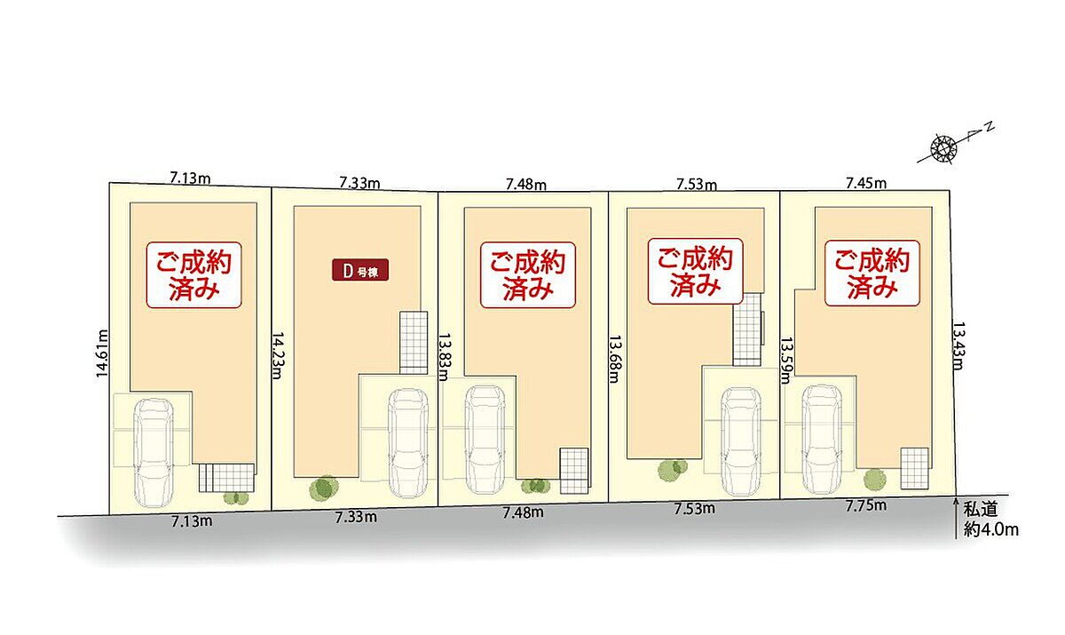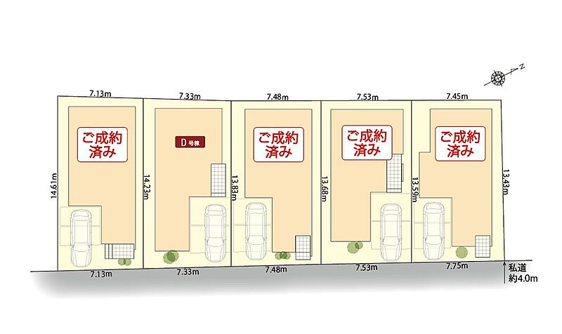 | 駐車場 | 1台 | 道路の幅員 | 東南側 幅員約4.0m私道に接面 |