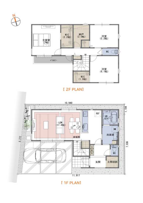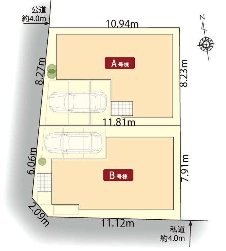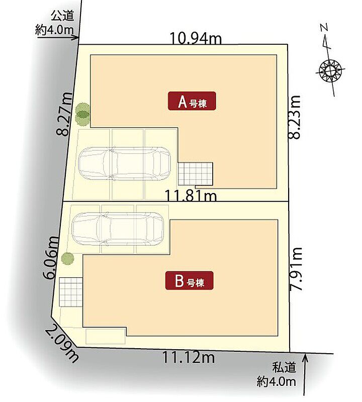 - 98.97m2(A号棟)~99.59m2(B号棟)
