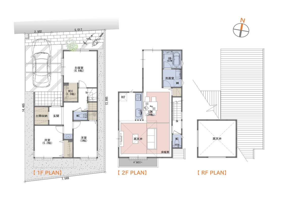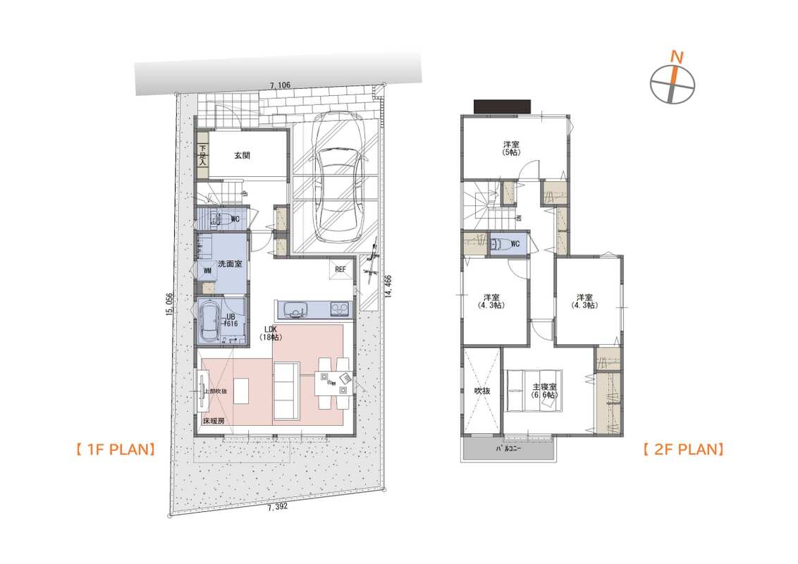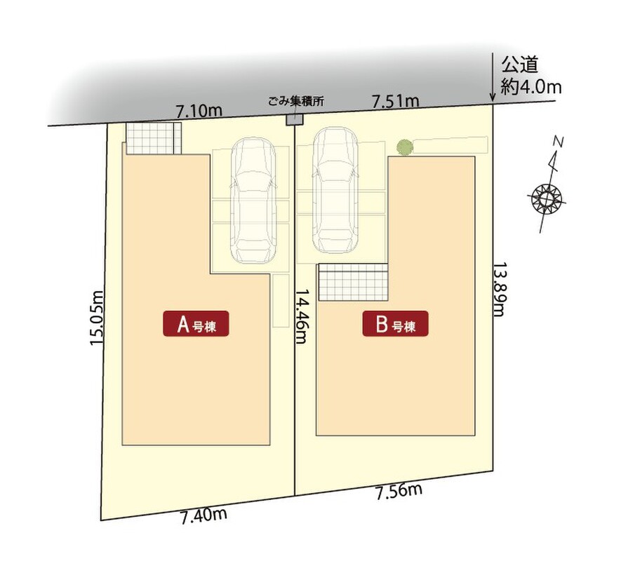 | 建物面積 | 97.94m2(A号棟)~98.76m2(B号棟) | 土地面積 | 106.47m2 |