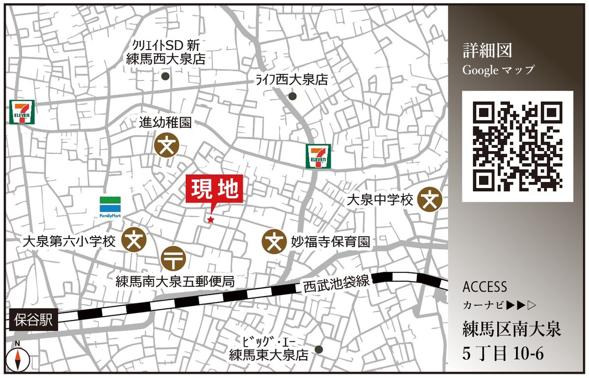 西武池袋線「保谷」駅 徒歩13分 西武池袋線「大泉学園」駅 徒歩16分 練馬区コミュニティバス「丸山東橋」停 徒歩6分 |