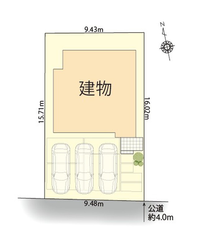 | 駐車場 | 3台 | 道路の幅員 | 南側 幅員約4.0m公道に接面 |