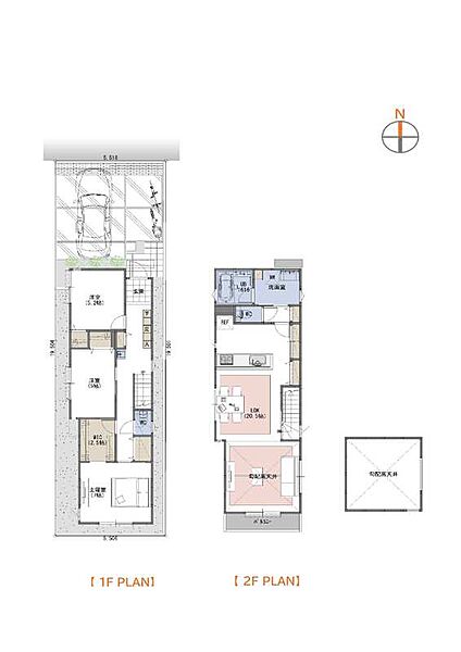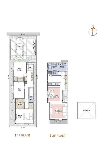 | 駐車場 | 1台 ~ 2台 | 道路の幅員 | 北側 幅員約8.0m公道に接面、南側 幅員約6.0m公道に接面 |