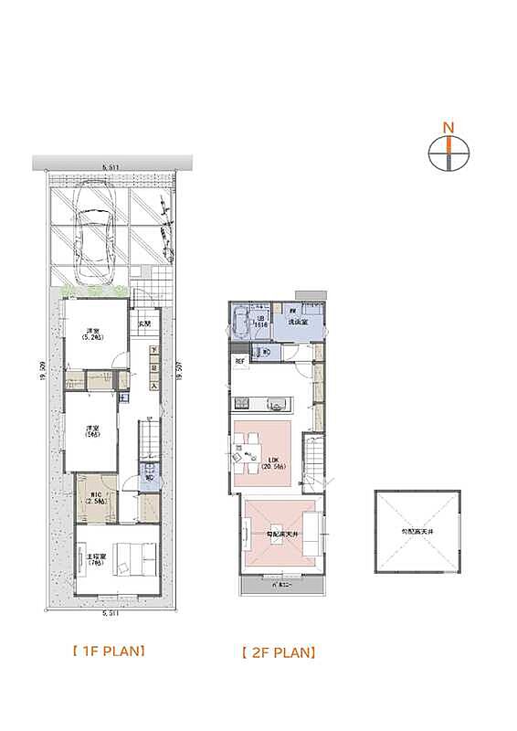 | 建物面積 | 94.70m2(F号棟)~99.59m2(A・C号棟) | 土地面積 | 107.42m2(D号棟)~107.62m2(F号棟) |