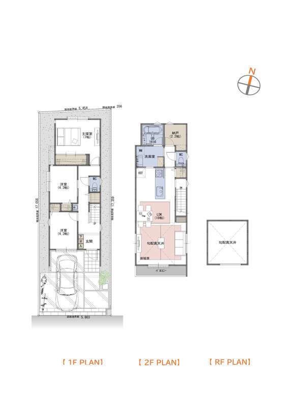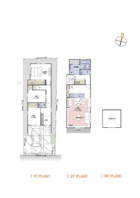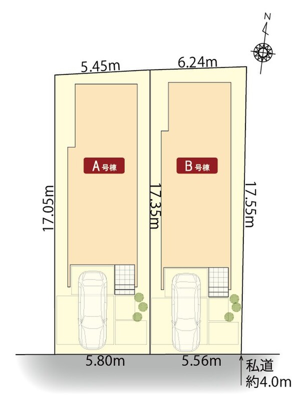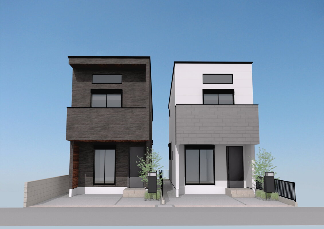 | 建物面積 | 90.57m2(A号棟)~93.36m2(B号棟) | 土地面積 | 99.87m2(B号棟)~99.88m2(A号棟) |