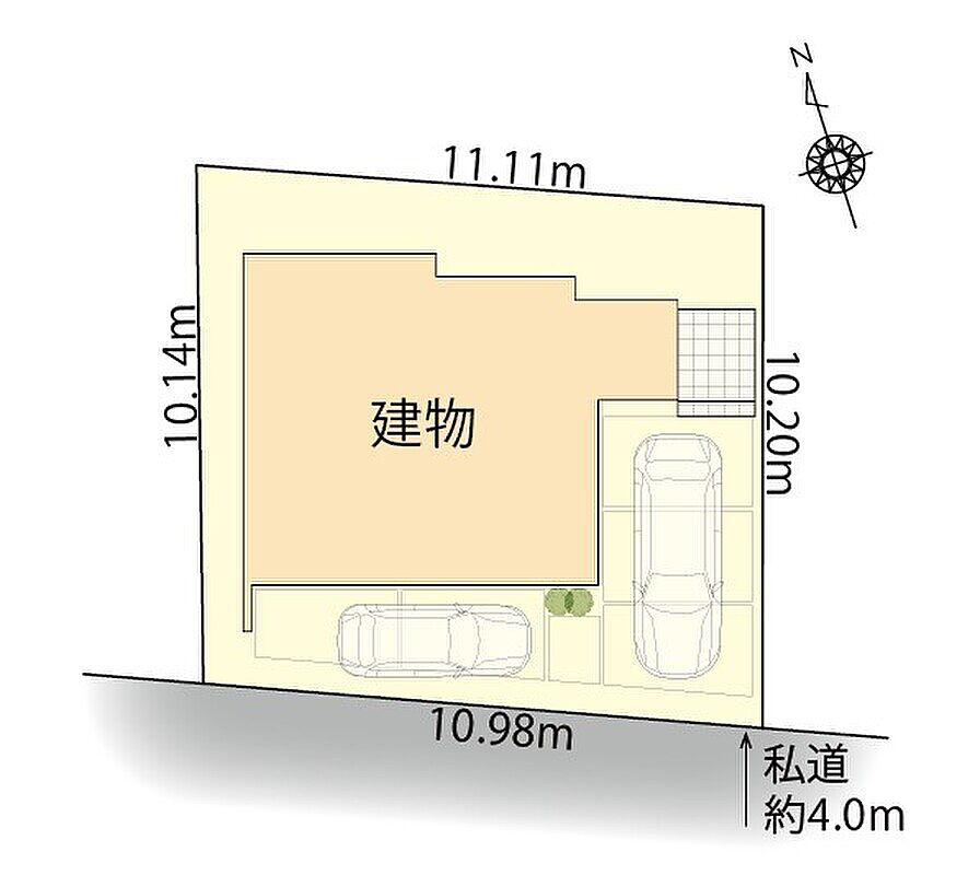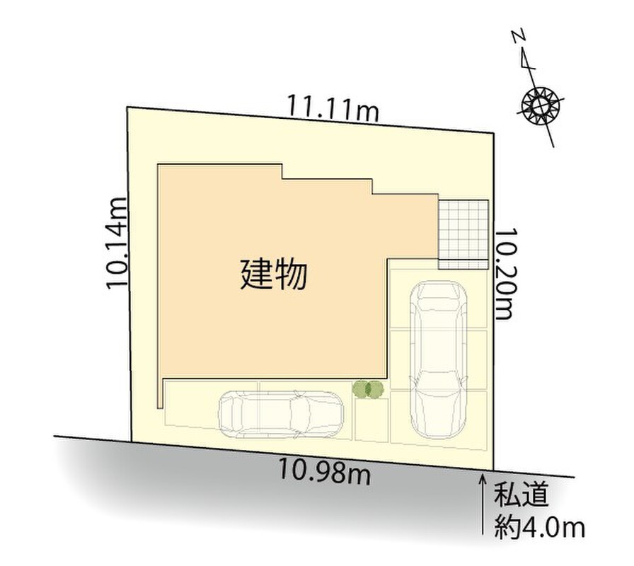 | 駐車場 | 2台 | 道路の幅員 | 南西側 幅員約4.0m私道に接道 |