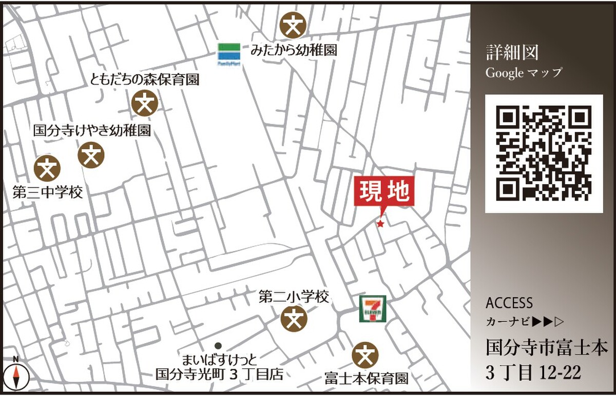 - JR中央線「国立」駅 徒歩20分西武国分寺線「恋ヶ窪」駅 徒歩28分立川バス7分「国分寺第二小学校北」バス停 徒歩7分