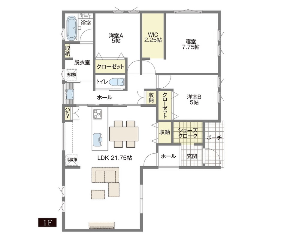 家事動線にも配慮しながら居室とLDKを分けることにより来客時にもプライベートが保たれます。
