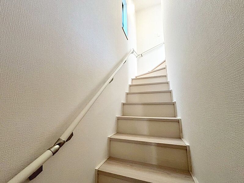 階段に手すりが付いているので、小さなお子...