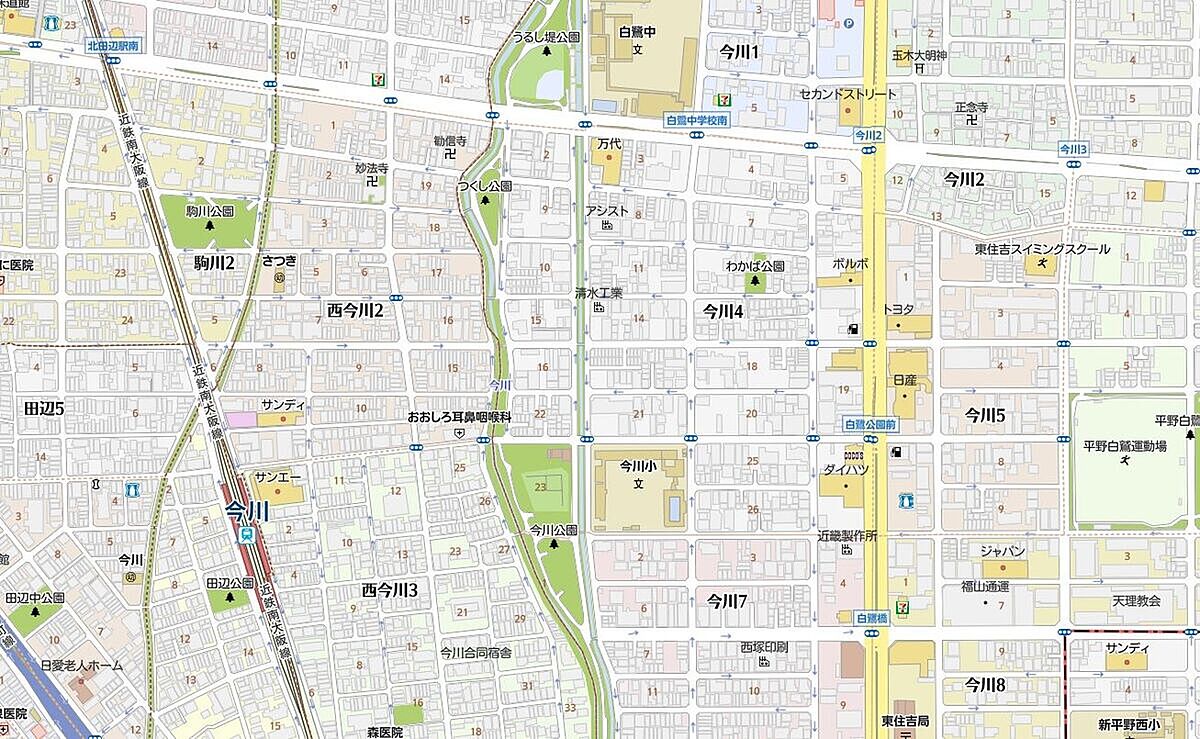 近鉄南大阪線「今川」駅 徒歩8分 Osaka Metro谷町線「田辺」駅 徒歩13分 |