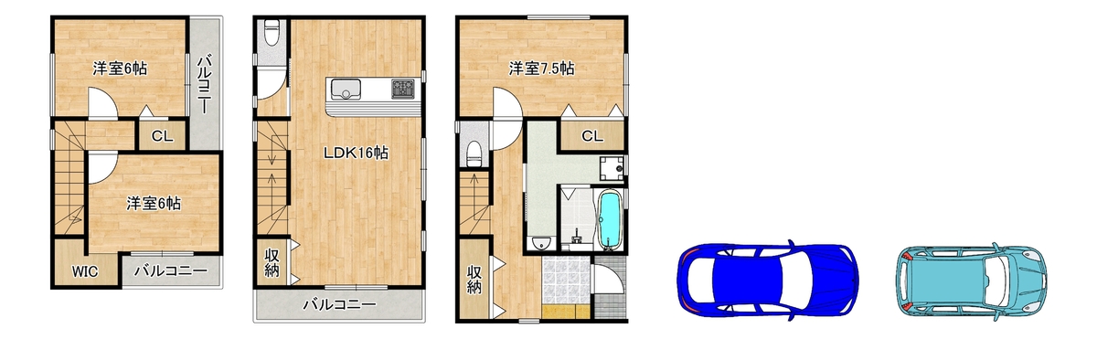| 間取り | 2SLDK+WIC | 建物構造 | 1号棟:木造3階建、2号棟:木造2階建 |
