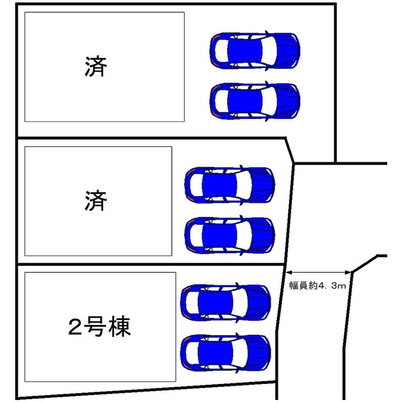 | 駐車場 | 1台 ~ 2台 | 道路の幅員 | 東側約4.3m |