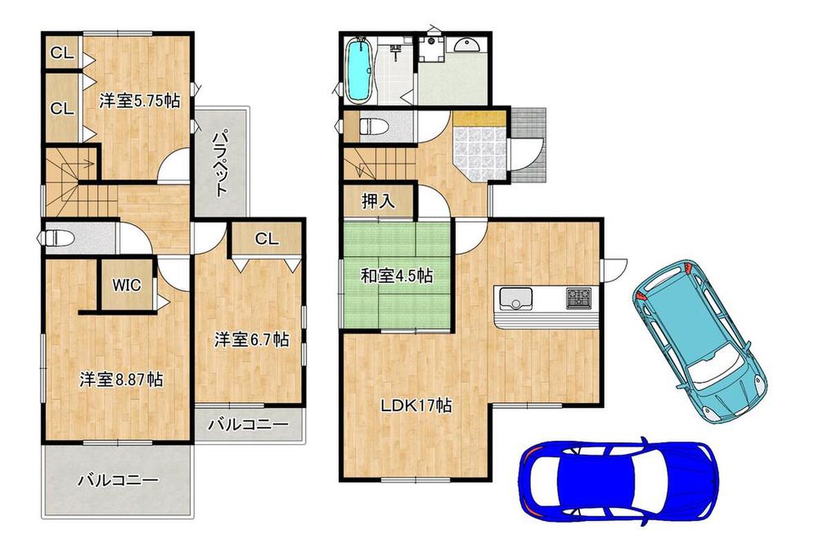 | 間取り | 4LDK+WIC | 建物構造 | 木造2階建 |