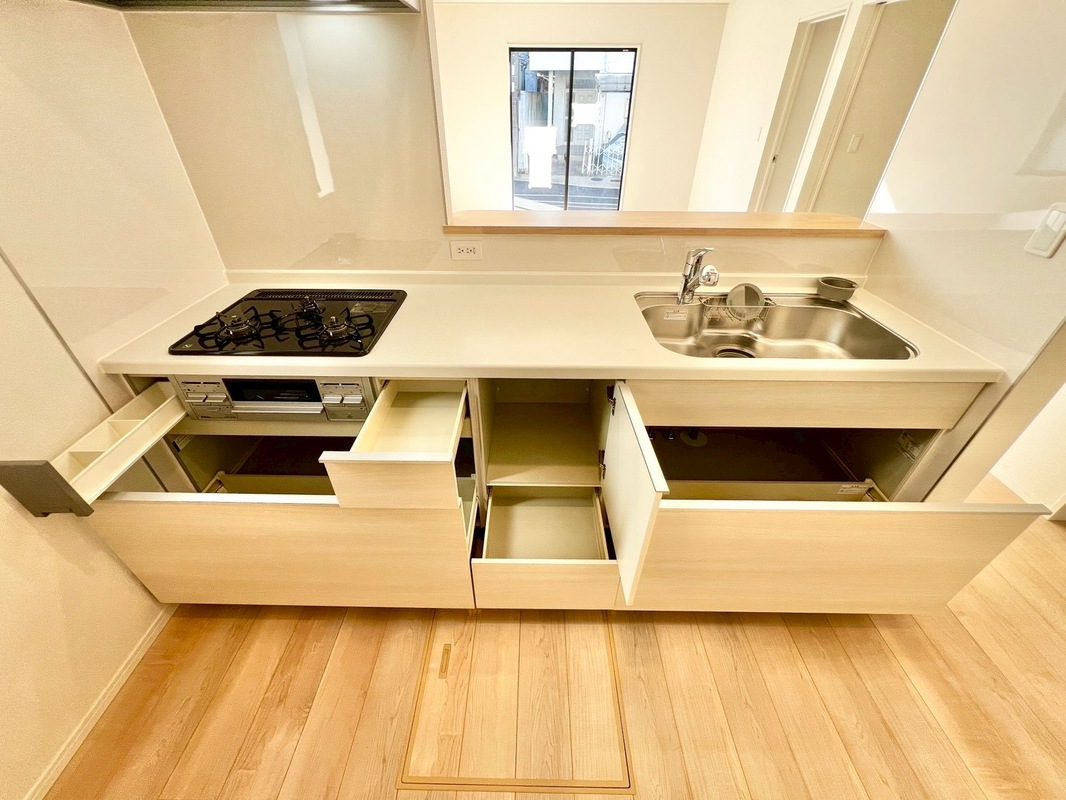 浄水器付のシステムキッチン!3口コンロでお料理のレパートリーも増えますね!