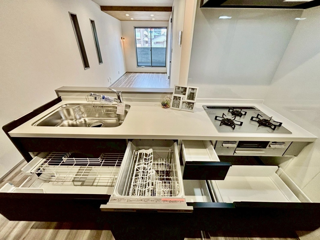 食器洗浄機も付いているので、後片付けも楽...