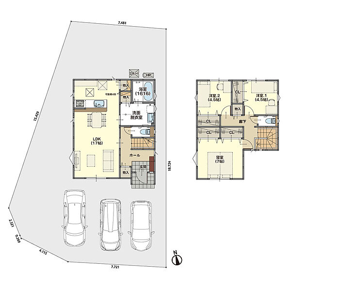 | 駐車場 | 3台 | 道路の幅員 | 南側6.9m、北西側9.5m |