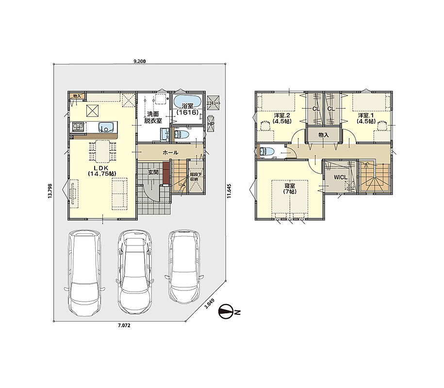 月々実質負担57,678円~ 太陽光搭載 駐車3台 WIC・階段下収納付