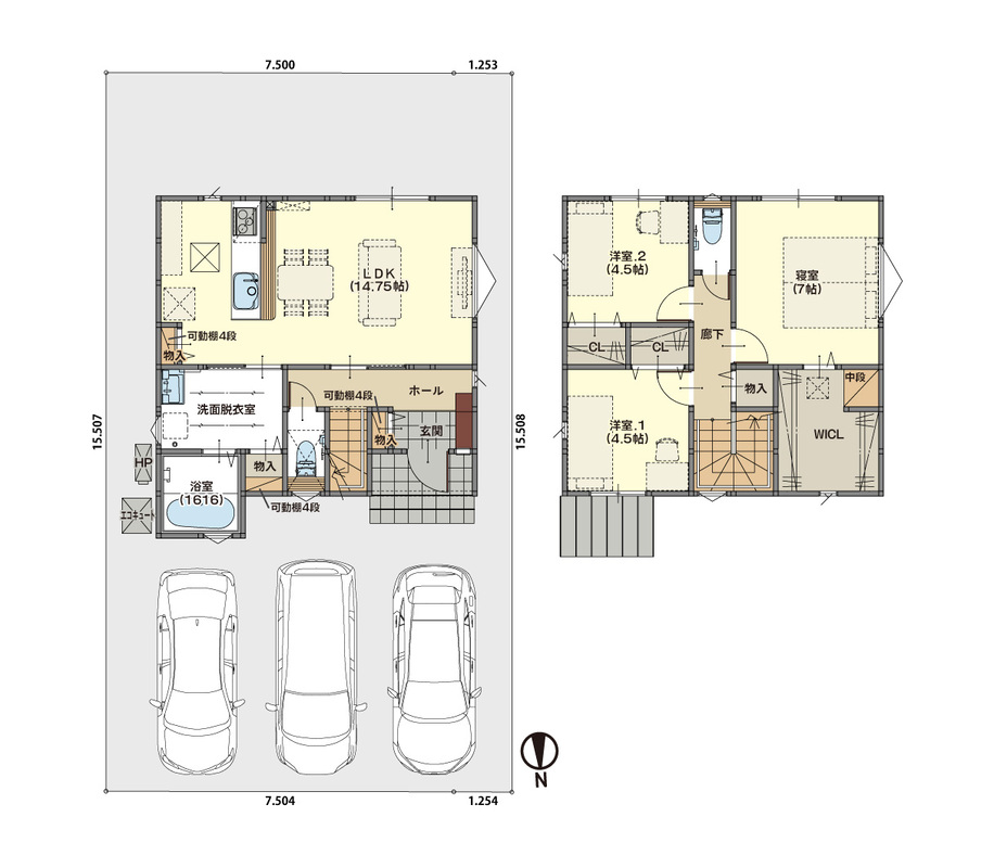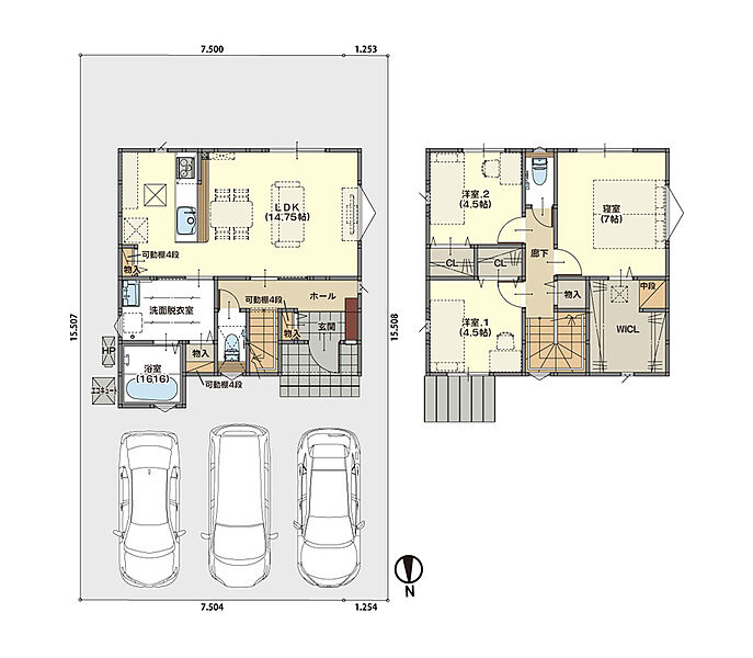 | 駐車場 | 3台 | 道路の幅員 | 北側5.9m |