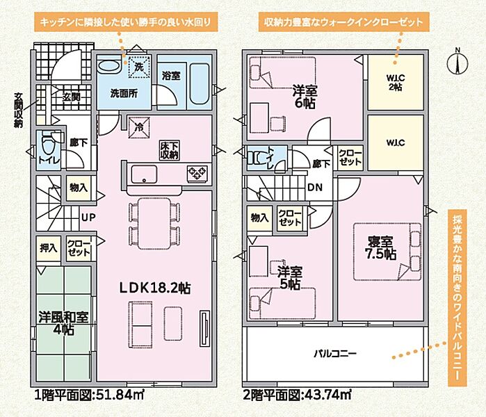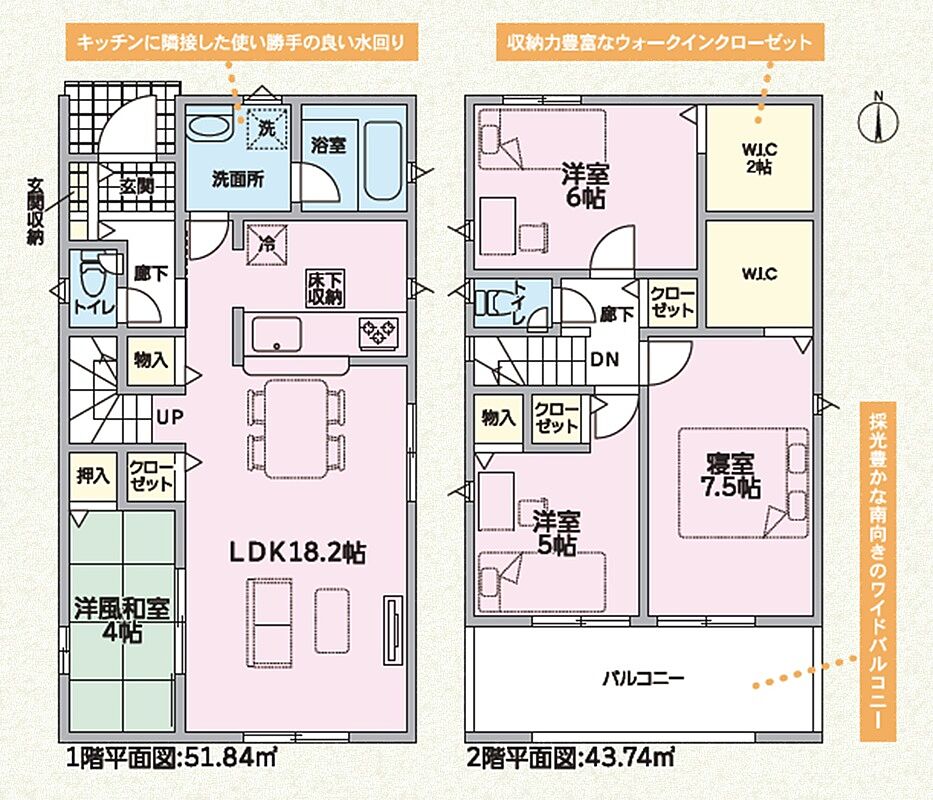 □リビングに隣接する和室のある4LDK お子様の遊び場や寛ぎスペースに最適です!リビングの続き間として広々と使えます!□全居室収納はもちろんのこと、2ケ所のWICやリビング・ホールの収納など豊富な収納