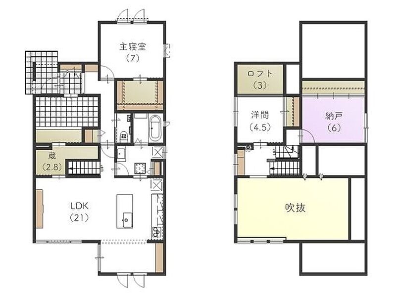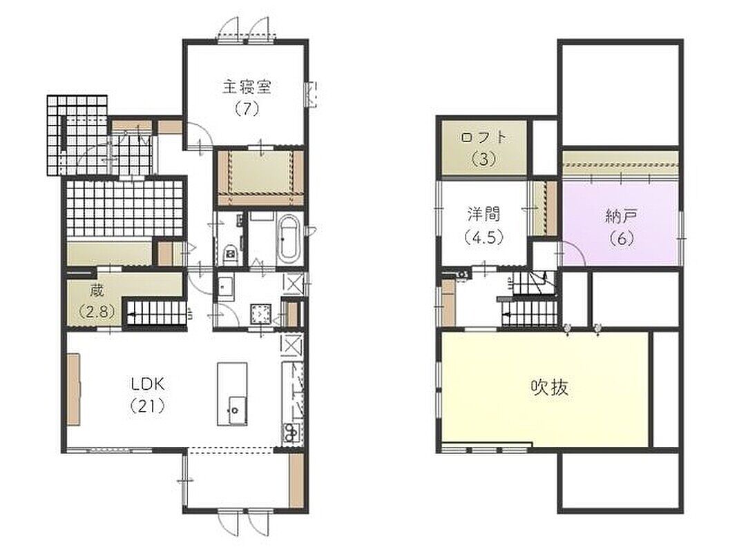 川奈駅から徒歩約4分の分譲地。土間の「蔵」がある平屋風二階建て。