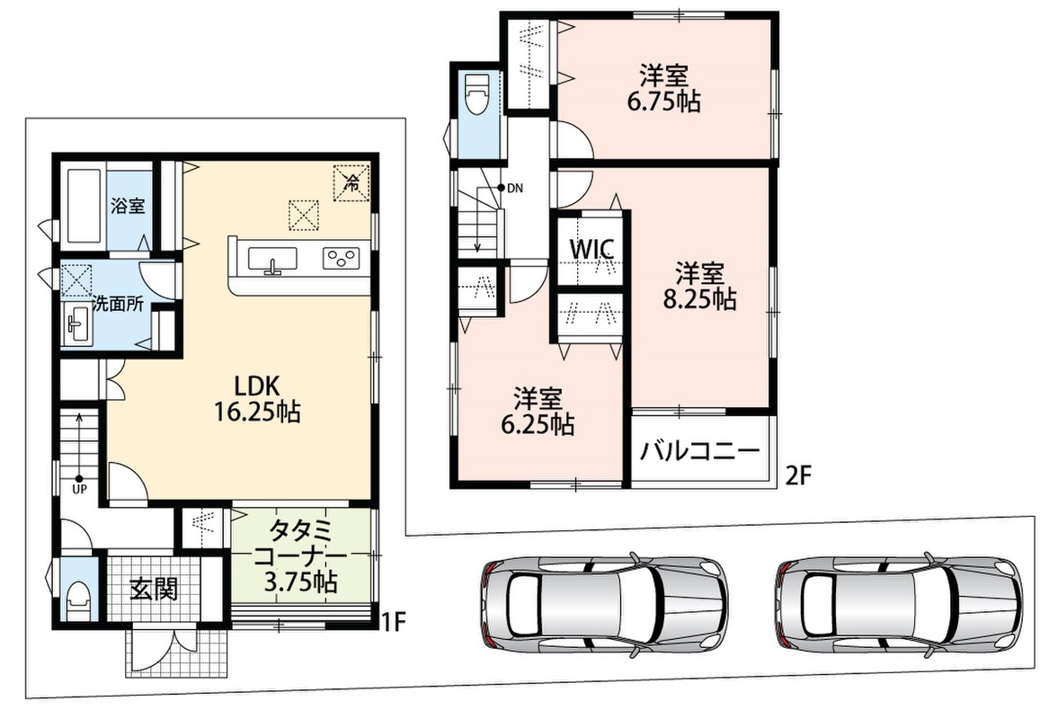 2号地 間取り 4LDK 価格 4590万円 建物面積 94.77m2 土地面積 82.07m2 -