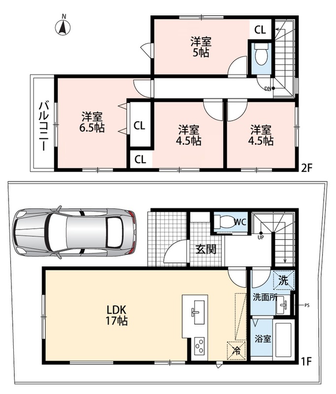 Terrechez 高槻市東五百住町 第1期 限定1邸 間取り 4LDK 価格 3198万円 建物面積 89.63m2 土地面積 89.31m2