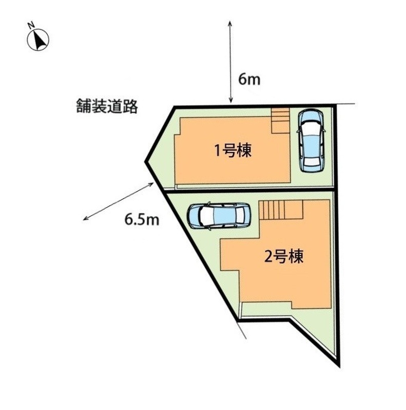 | 駐車場 | 1台 | 道路の幅員 | 北側6m・西側6.5m、アスファルト舗装 |