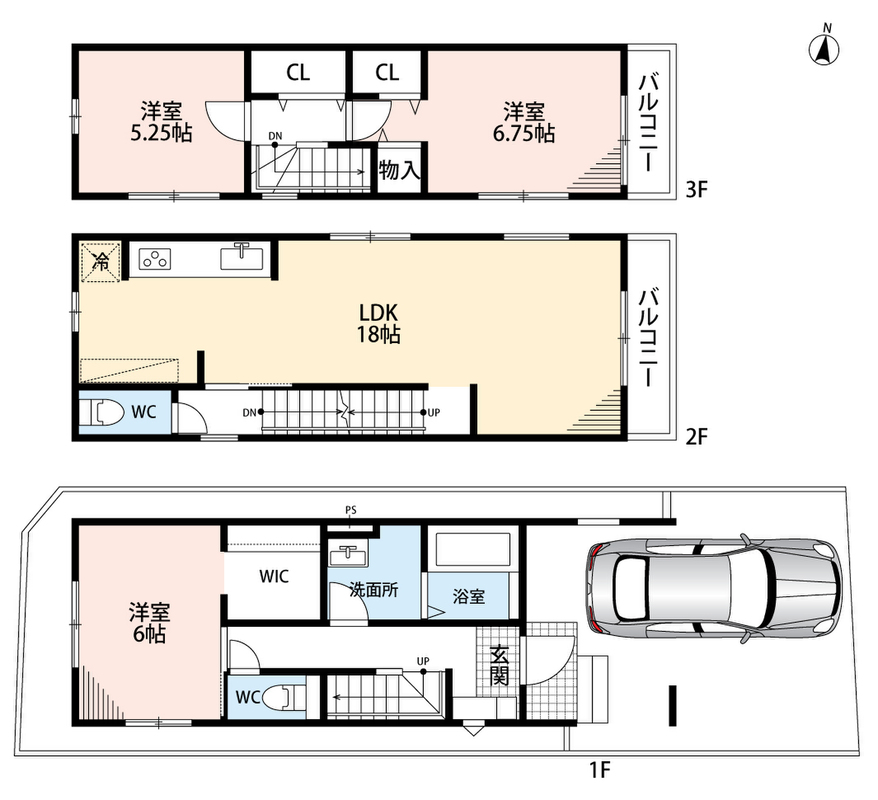| 間取り | 3LDK | 建物構造 | 木造3階建(軸組工法) |