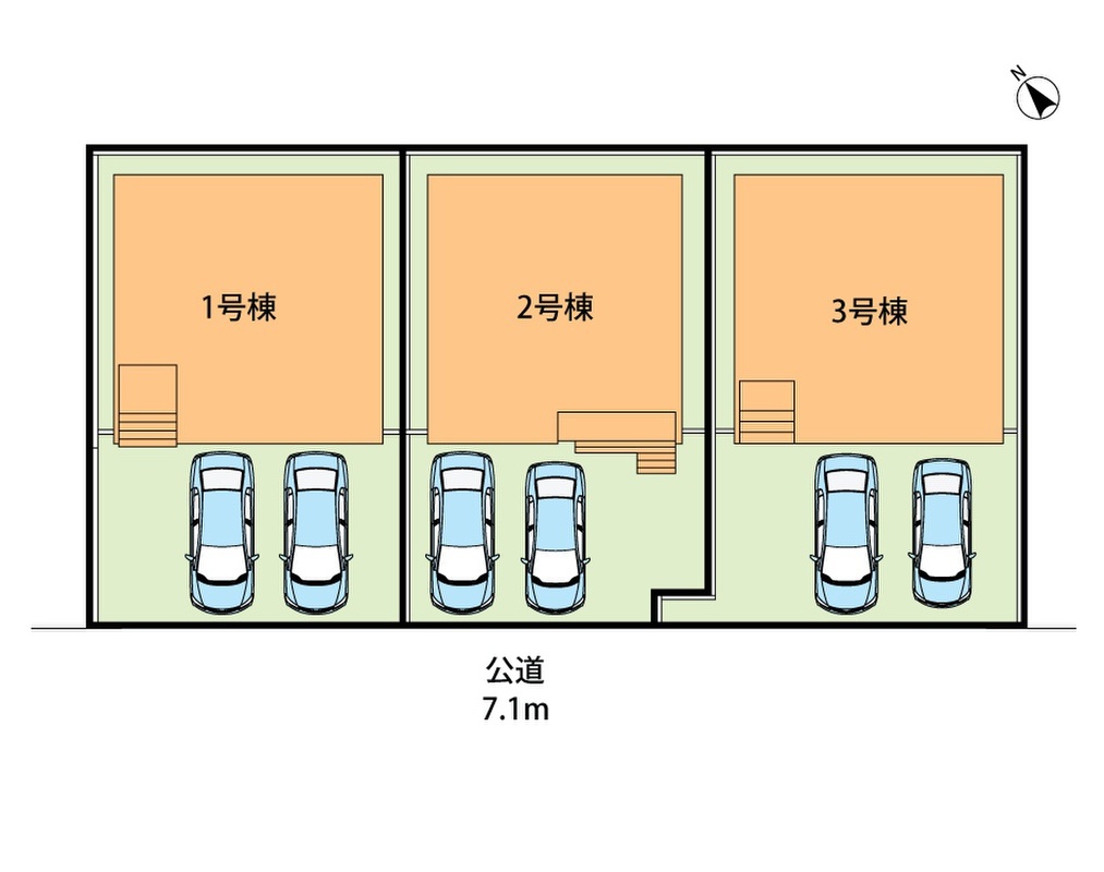 | 駐車場 | 2台 | 道路の幅員 | 南西側7.1m、アスファルト舗装 |