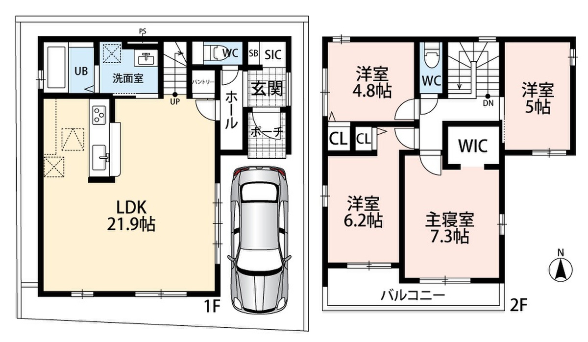 2号地 間取り 4LDK 価格 3798万円 建物面積 101.32m2 土地面積 96.57m2 -