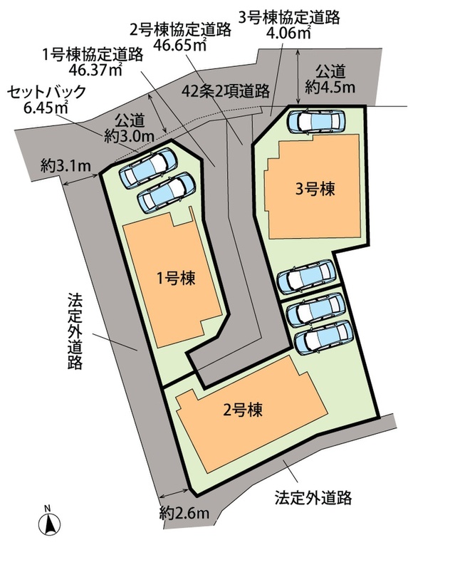 | 駐車場 | 1台 ~ 3台 | 道路の幅員 | 2.6m~4.5m、アスファルト舗装 |