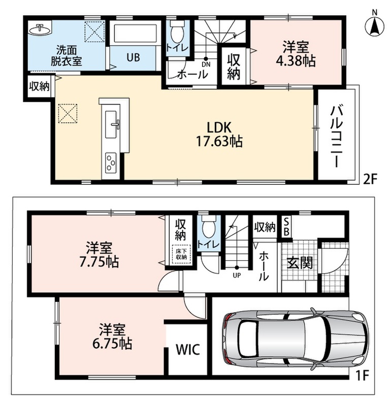 2号地 間取り 2LDK+S 価格 4380万円 建物面積 104.39m2 土地面積 76.91m2 -
