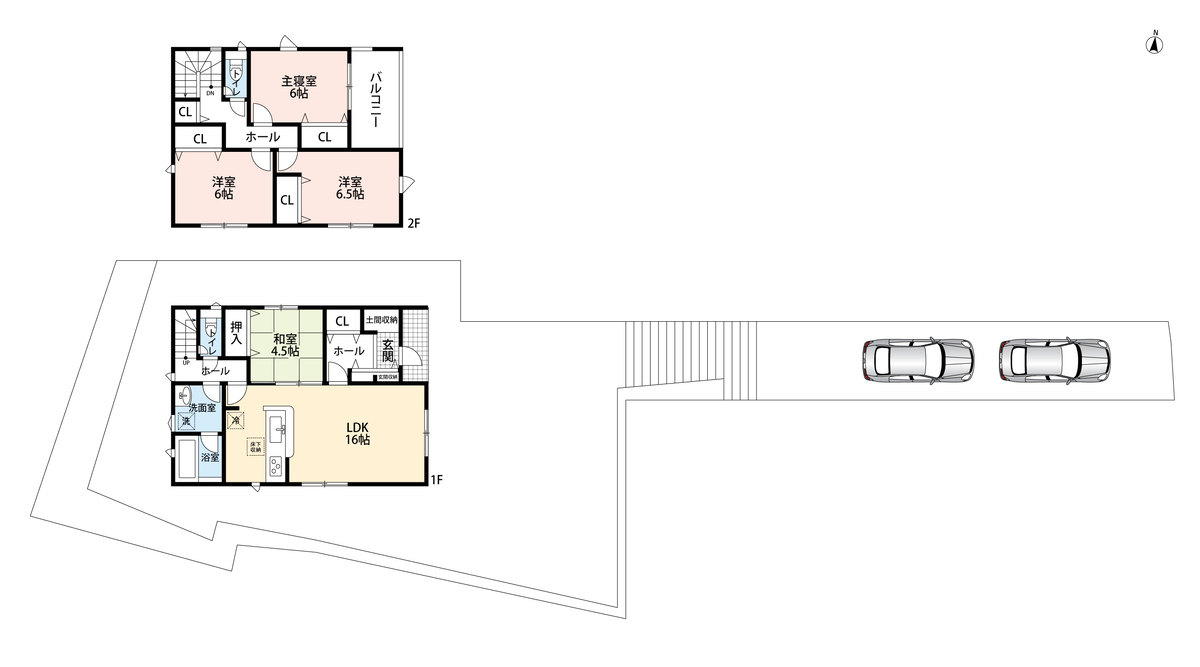 | 駐車場 | 1台 ~ 2台 | 道路の幅員 | 6m・6.2m、アスファルト舗装 |