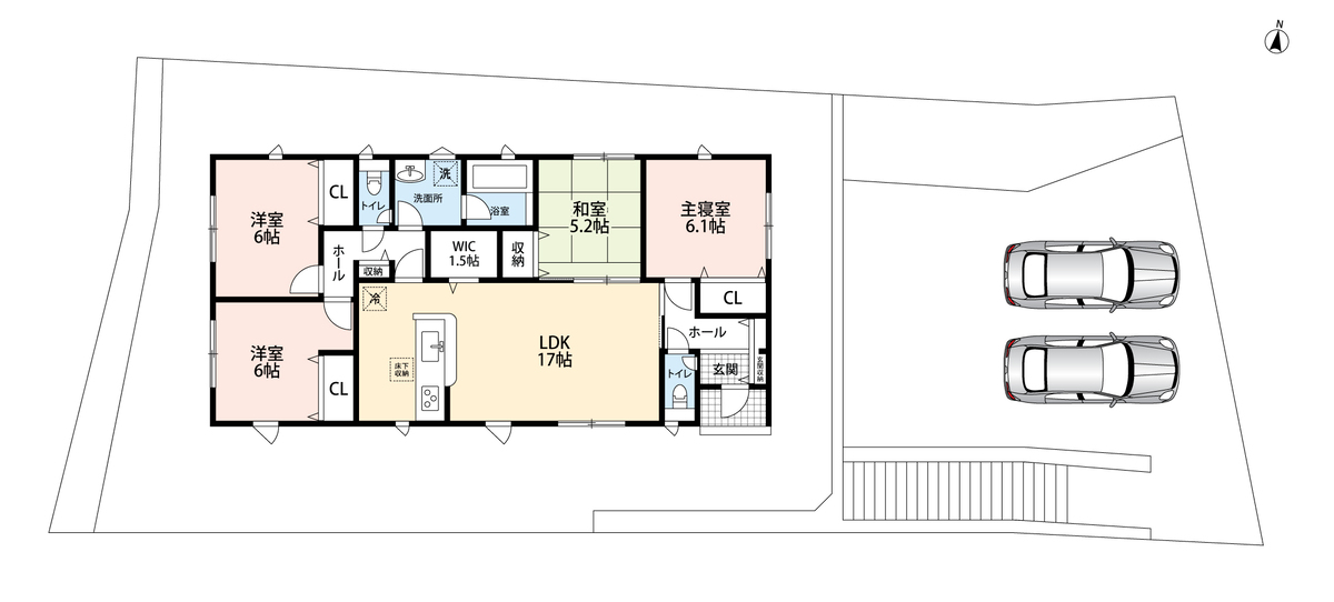 - ※完成予想図やCG合成画像は、門塀・植栽・庭・外観等、実際とは多少異なる場合があります。