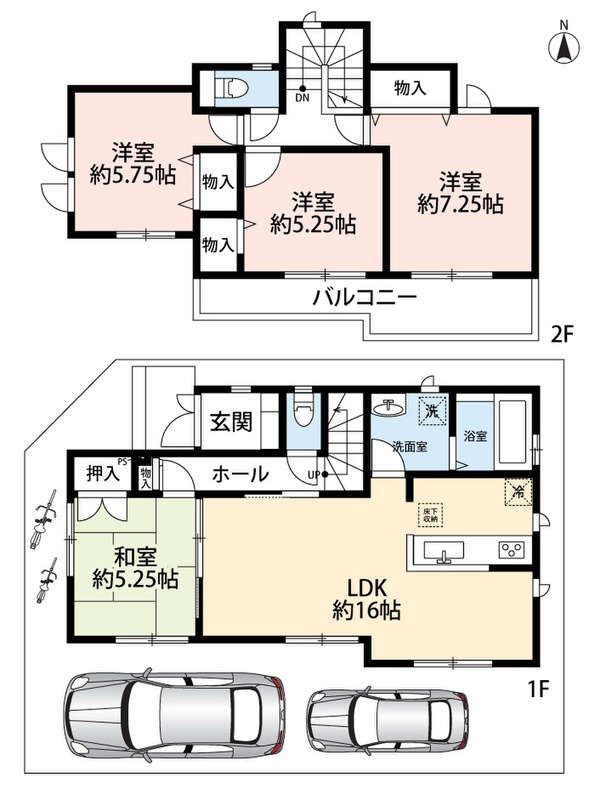 2号地 間取り 4LDK 価格 3990万円 建物面積 93.56m2 土地面積 108.38m2 -