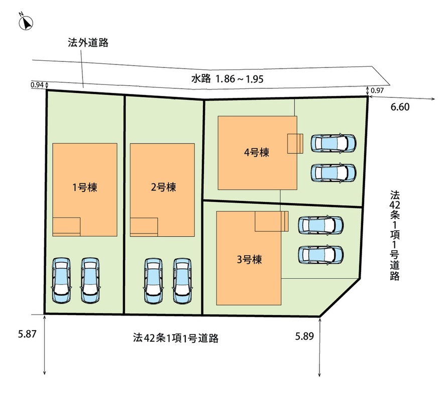 | 駐車場 | 1台 ~ 2台 | 道路の幅員 | 5.8m~6.2m、アスファルト舗装 |