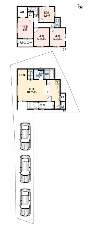 1-2号地 間取り 4LDK 価格 5298万円 建物面積 97.29m2 土地面積 90.17m2 -